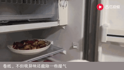 放一卷纸进冰箱里,不但吸异味还能去除一些湿气,一个月换一次。换下来的卷纸还可以用来擦擦油渍、污垢等。