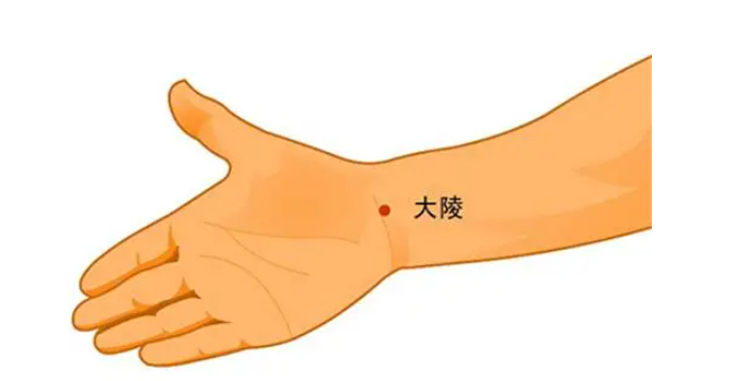 这个穴位在五行属土,对应着脾胃,是一味很经典的“健胃消食片”,可以降胃火、去心火,提升胃动力。脾胃不和,消化不良等都可以通过这个穴位来调。它在手掌根,腕横纹的中点上。可以直接用拍痧掌拍打大陵穴即可。