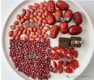 准备 30 克红豆、20 克红皮花生,提前用清水浸泡 2 小时,让食材充分吸水;接着往锅里加入泡好的红豆、红皮花生,再放 5 枚大枣、10 克枸杞,最后加一小块红糖调味;倒入足量清水,大火煮开后转小火慢煮 30 分钟,一碗热乎乎的养血汤就做好了。