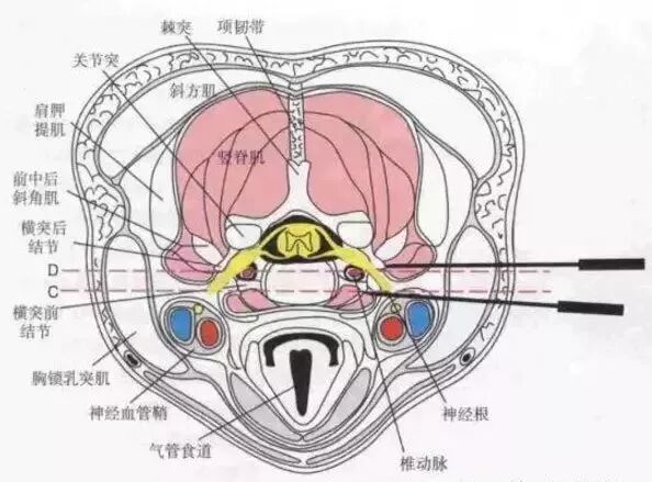 ③C线通过项部颈椎横突后结节前缘的额 状线。