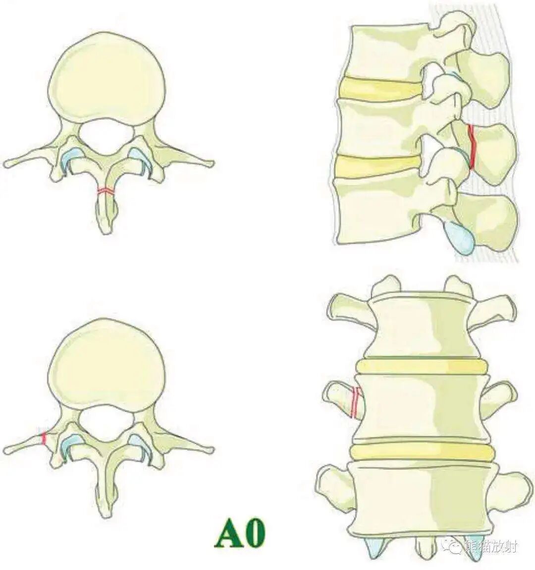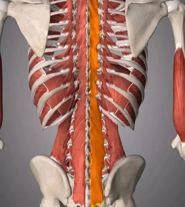 脊柱后部结构主要是椎骨的椎弓和突起,其中椎弓和两队关节突出主要承担相邻椎骨间的连接,其余三个大的突起,向后的棘突和向两侧的横突向后和向两侧连系着延伸到躯体的筋膜,在不同的脊柱分为不同层次,从后向两侧,再向前,最终在前正中线汇合。