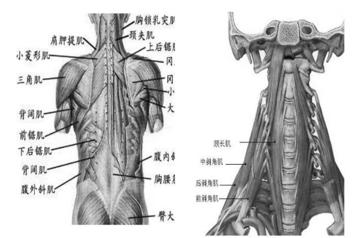 3、后斜角肌使颈部稳固,参与吸气运动,在举高和搬动物品时提高胸廓(抬高第一、二肋骨)。斜角肌的功能是颈侧屈,侧旋,前屈,上提1、2肋。