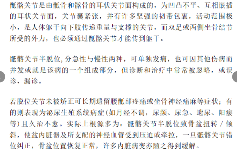 4.假性下肢不等长。3、这一复位手法是建立在生物力学及经典力学杠杆原理的基础之上的,因而具有科学性、实用性,其原理简述如下: