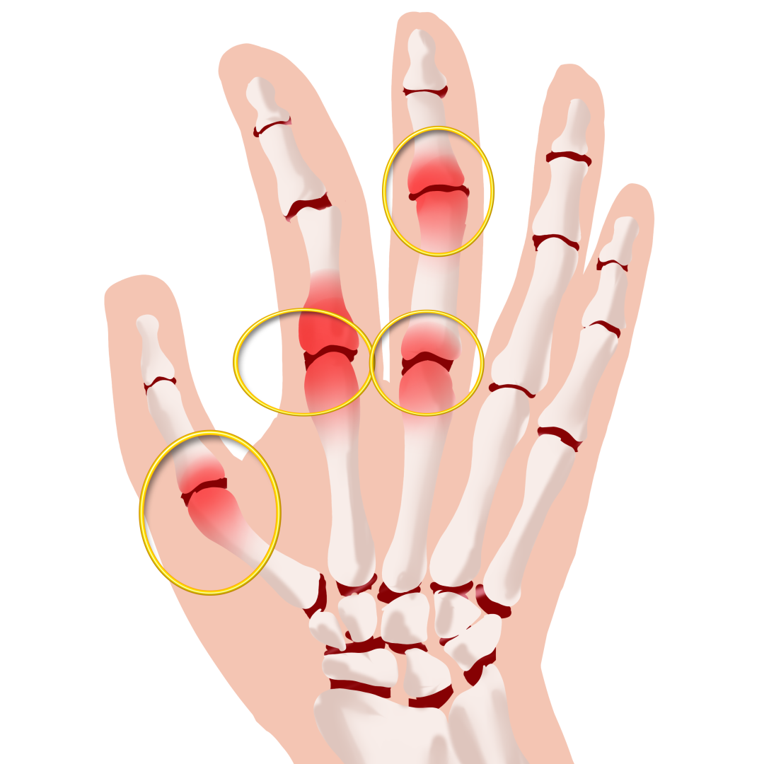 发病初期可出现单一或多个关节肿痛,大多为手指或足趾关节,肿痛是左右对称的。常表现为关节肿胀、疼痛、僵硬,按压关节时疼痛更明显。由于关节炎反复发作,疾病后期会出现关节畸形,比如常出现“天鹅颈”“纽扣花”样畸形。