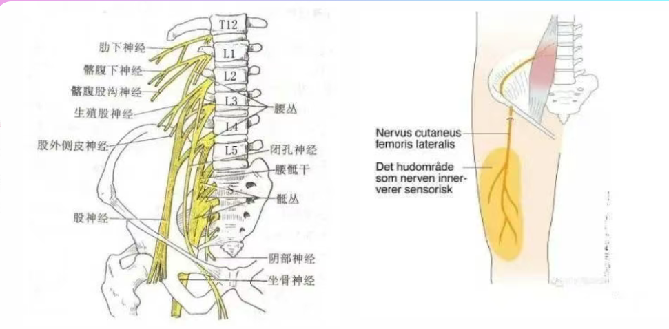 股外侧皮神经:第三腰椎横突末端附近有腰丛神经中的股外侧皮神经通过,因此本综合征的疼痛可影响到大腿前外侧。