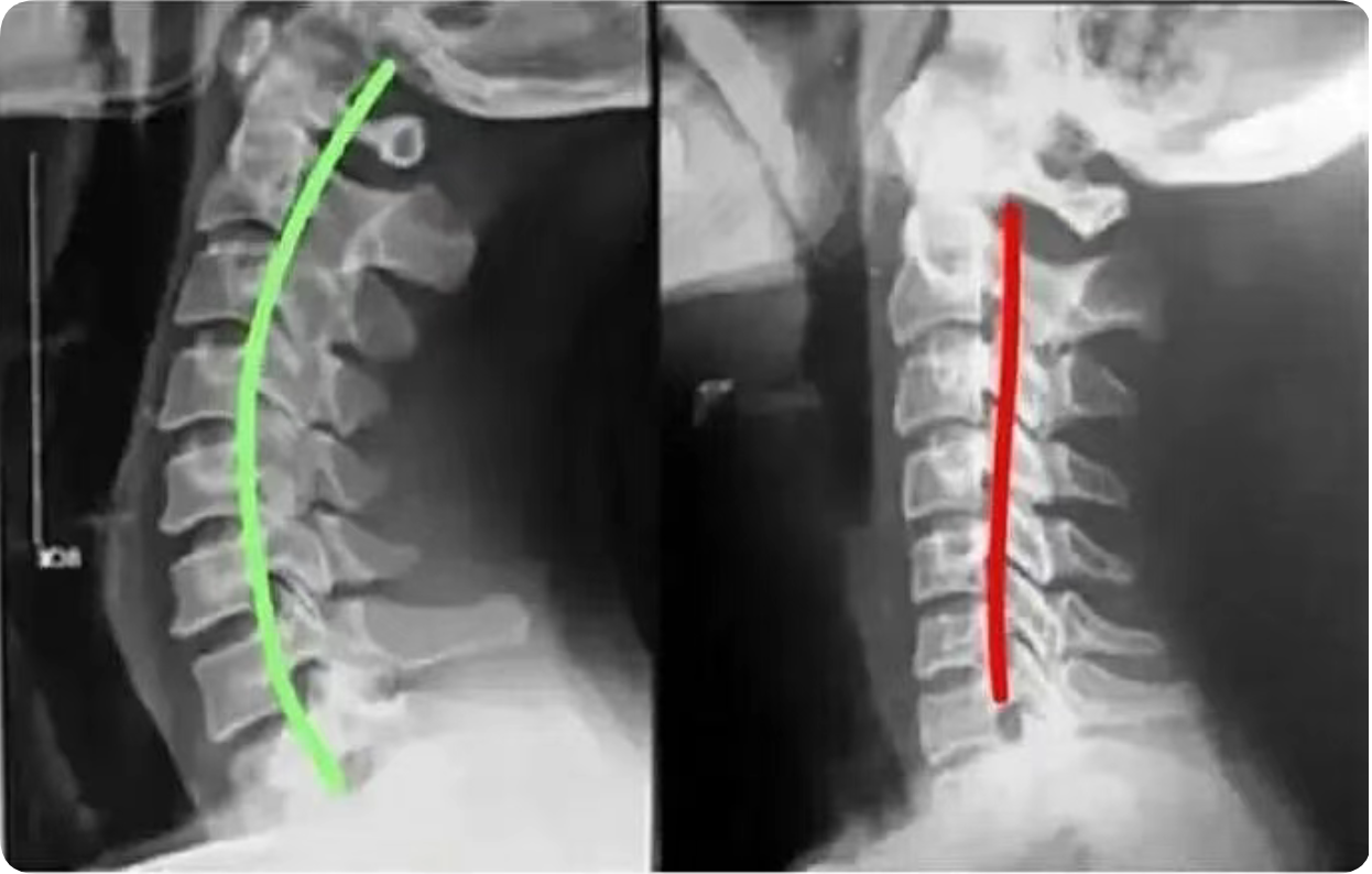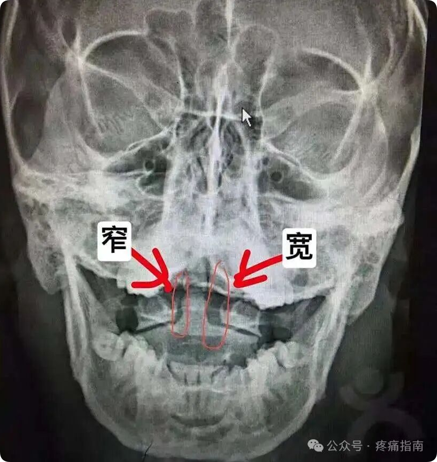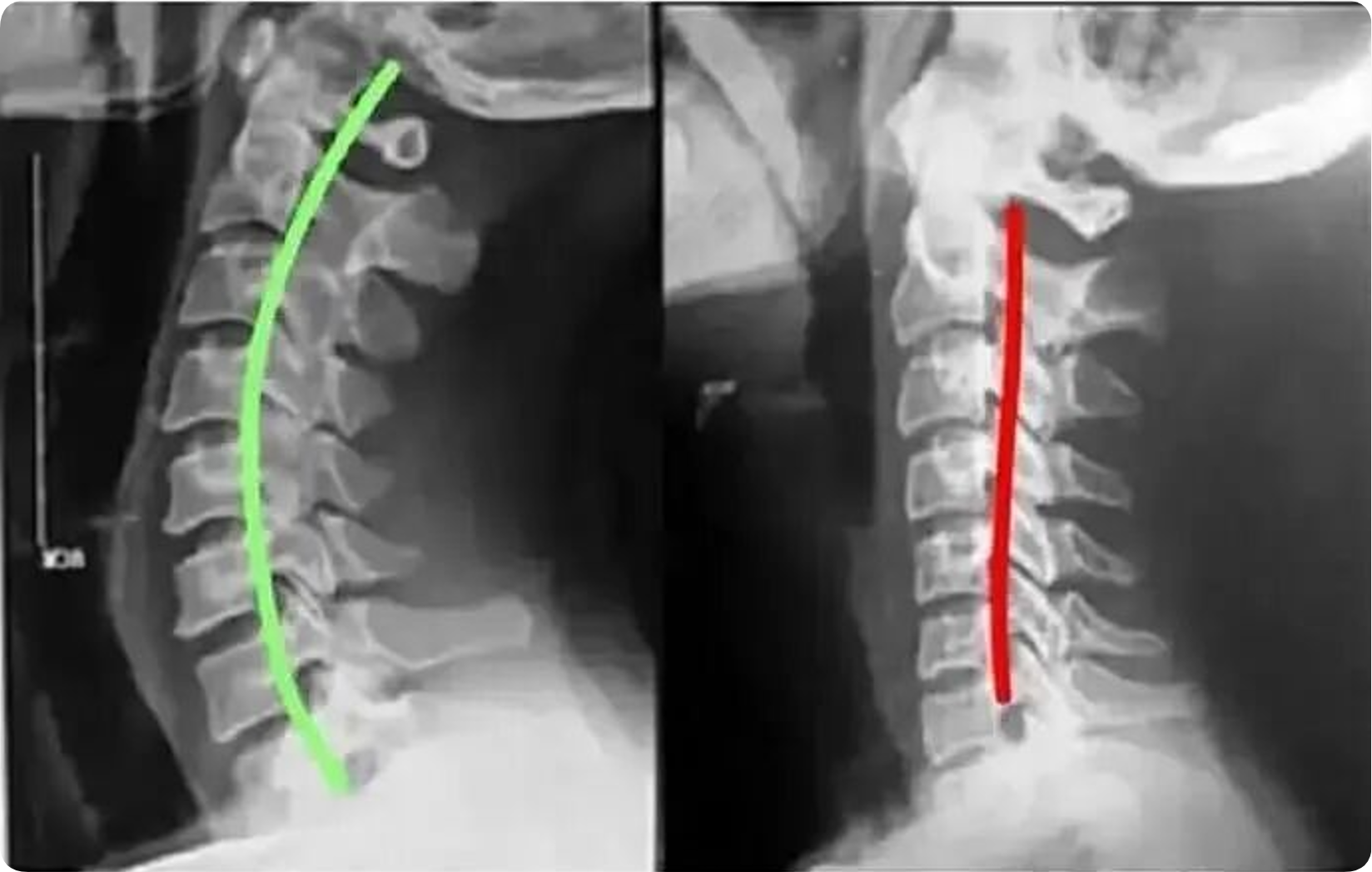 患者均有上颈段不适、头前屈后伸及颈部左右旋转受限,查体上颈段棘突有偏歪,局部压痛明显。颈椎X线检查:颈椎前后缘有骨 质增生,椎间隙变窄,生理曲度变直或颈 椎后缘连线中断、反弓;后纵韧带钙化,双线征、双突影,椎体呈仰、俯式或旋转式移 位;张口位示寰齿侧间隙及寰枢关节间隙左右不对称,寰枢椎外侧缘左右不对称, 齿状突轴线至枢椎外侧缘距离不相等,或 与寰椎的中轴线不重叠,二轴线互成夹角或分离。